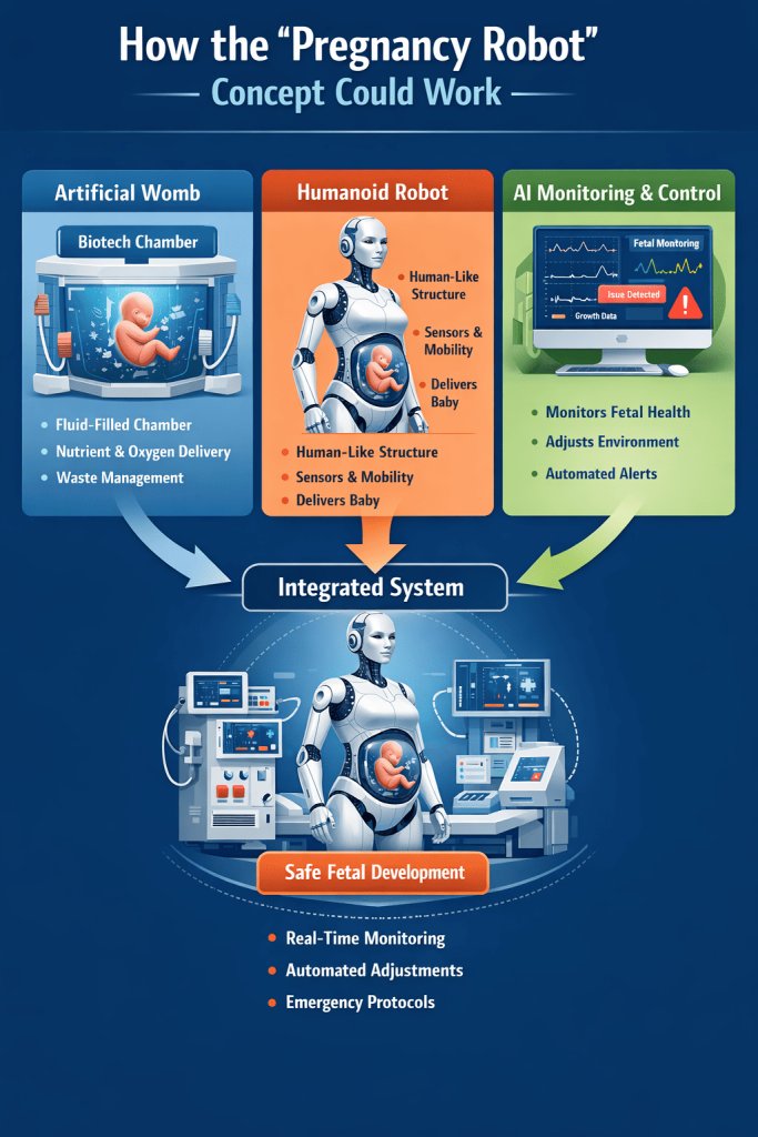 The “pregnancy robot” represents a fascinating intersection of biotechnology, robotics, and AI, but it is more a visionary concept than an imminent reality. Artificial womb research and humanoid robotics are advancing rapidly, yet significant scientific, ethical, and legal challenges remain.